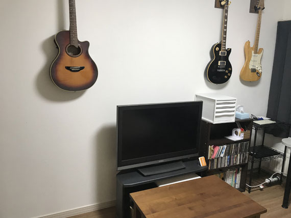 その② 穴の目立たない品を使って趣味のギターの壁掛けをするというご提案